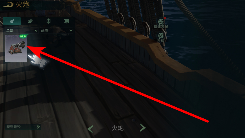 4、最后安裝火炮,在船只的火炮配置界面,選擇合適的火炮進行安裝,提升船只的攻擊能力,讓船只在面對敵人時能有更強大的火力輸出。