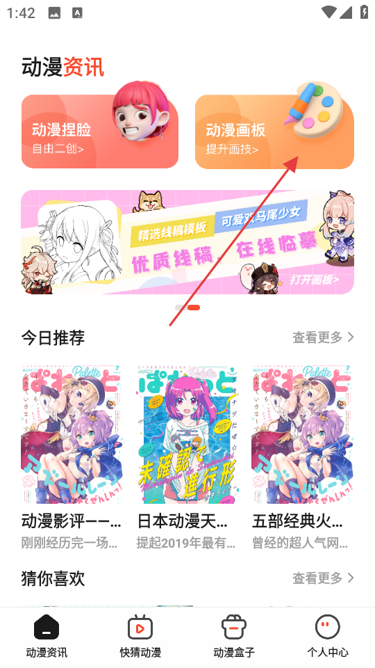 2、在動漫資訊頁面,點擊動漫畫板,進(jìn)入選擇畫板頁面。