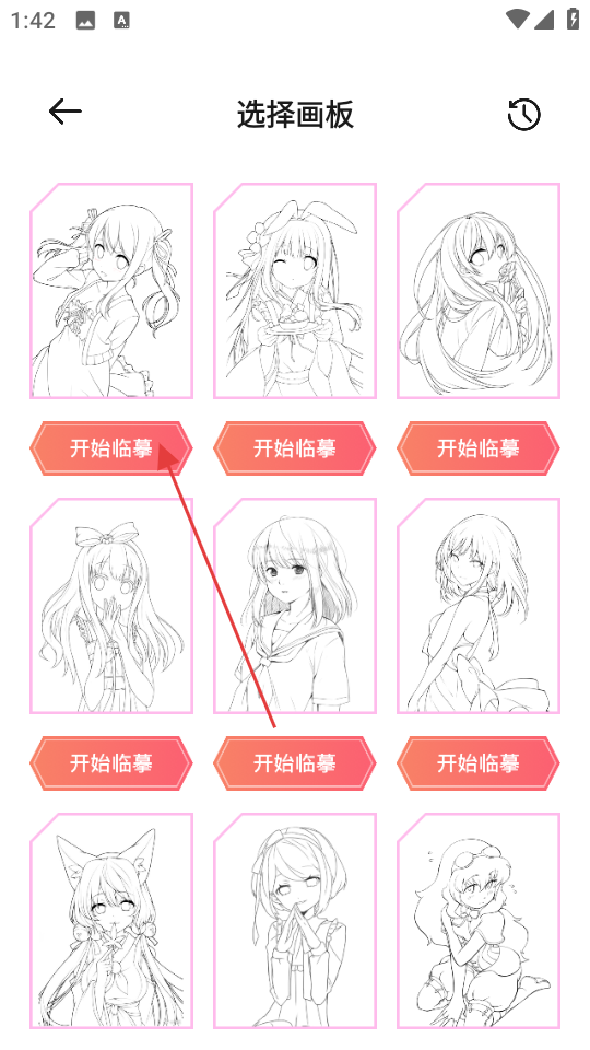 3、在選擇畫板頁面,選擇心儀的線稿,點擊開始臨摹。