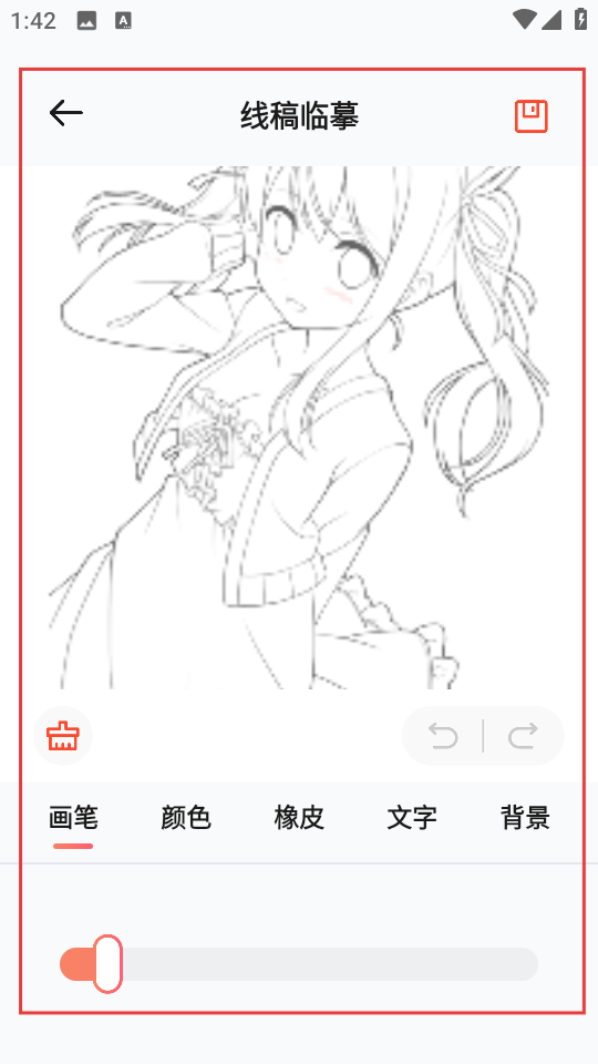 4、進(jìn)入線稿臨摹頁面,使用畫筆,顏色等工具進(jìn)行臨摹創(chuàng)作。