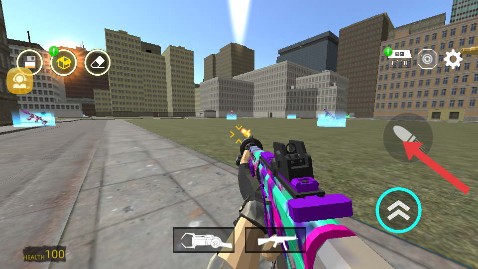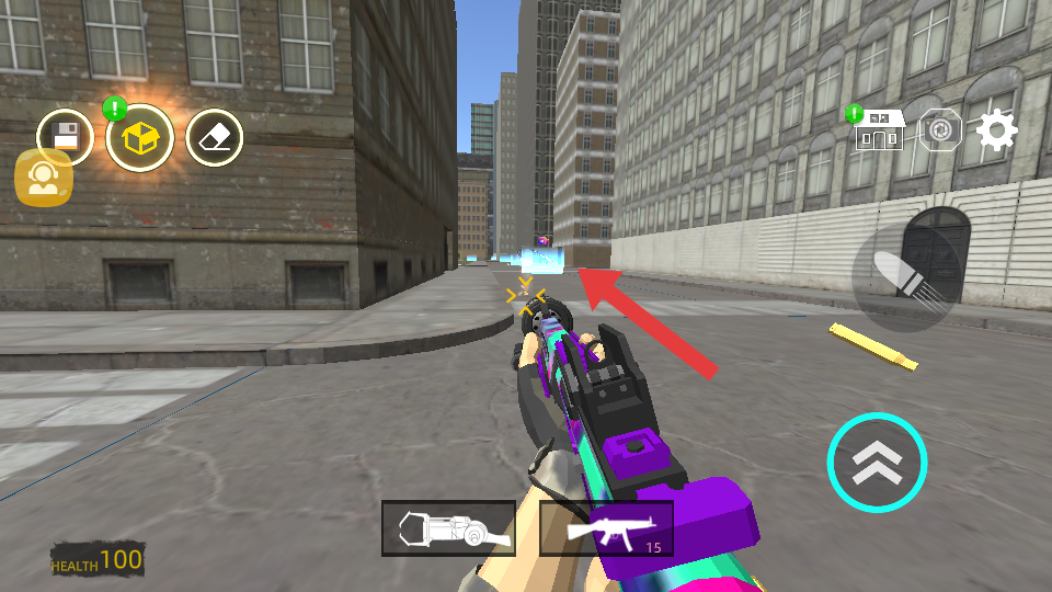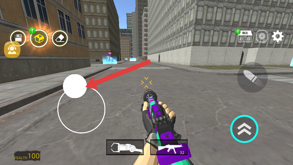 1、進入城市場景后,先通過視角滑動熟悉第一人稱視野,同時操作移動搖桿在街道、建筑間隙練習走位,場景障礙物多。
