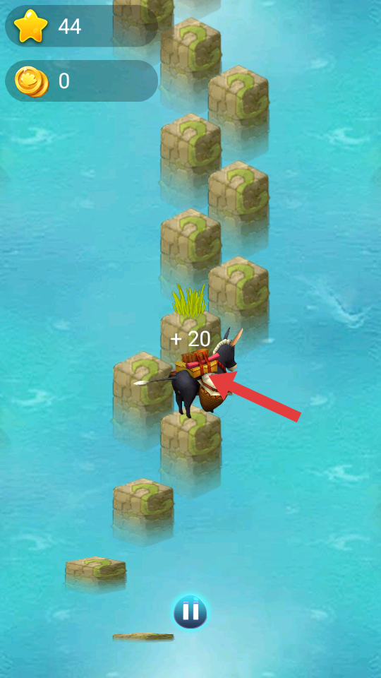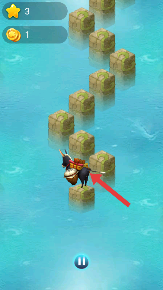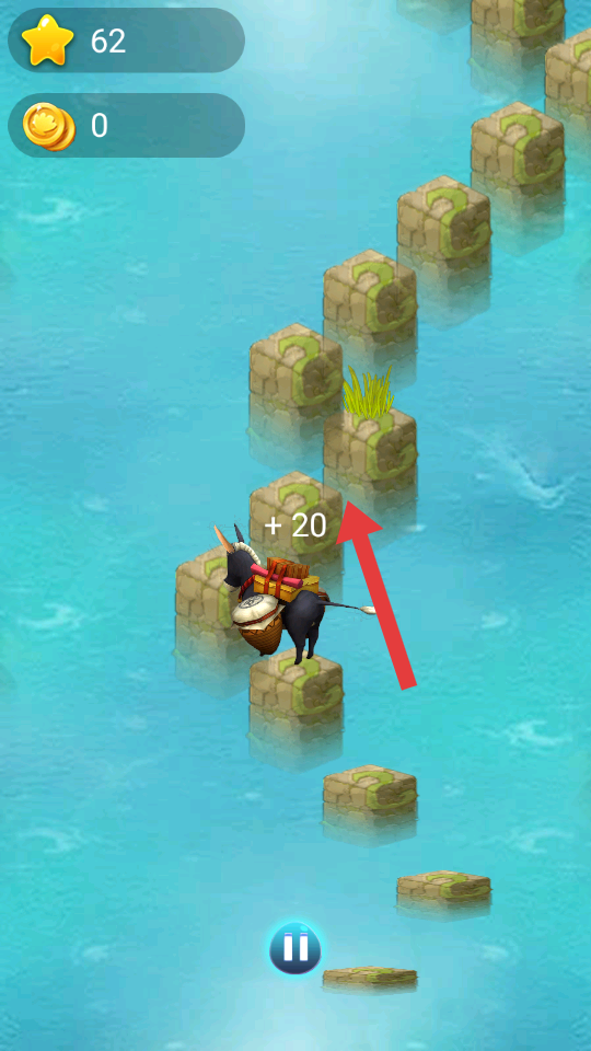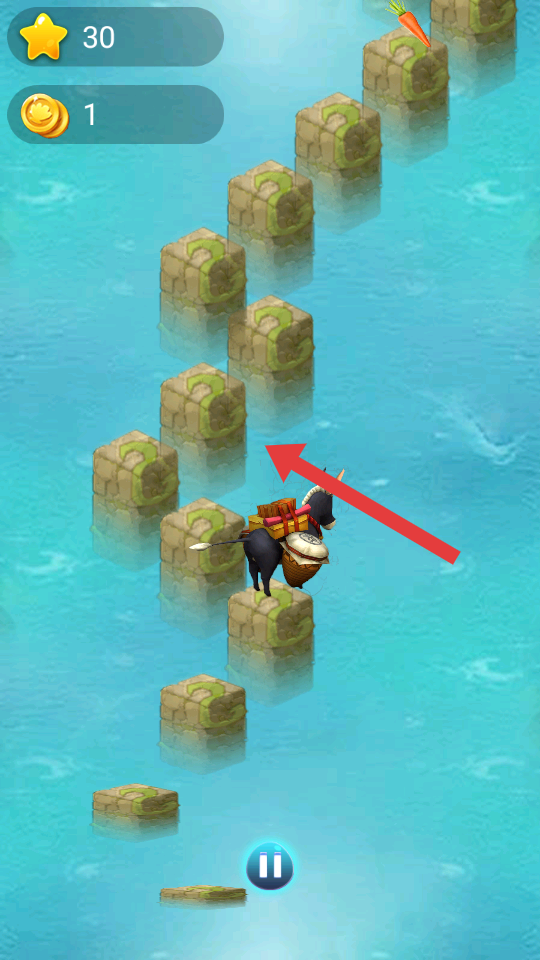 1、進(jìn)入卡通場(chǎng)景后,先熟悉驢子的移動(dòng)操作,通過(guò)屏幕下方的方向鍵控制驢子在石墩上行走,重點(diǎn)練習(xí)短按方向鍵微調(diào)位置。