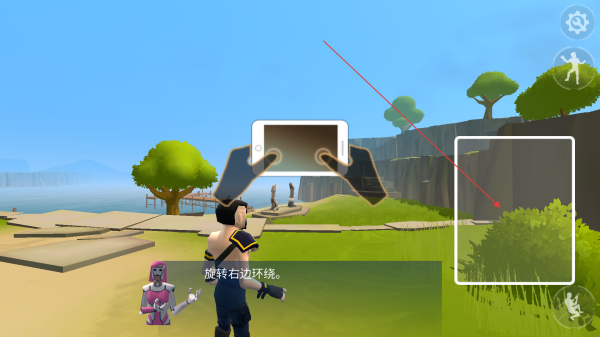 2、按照提示在屏幕右側操作實現(xiàn)視角旋轉以便更好觀察周圍環(huán)境。