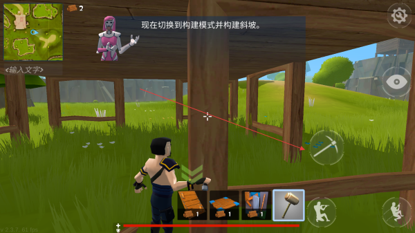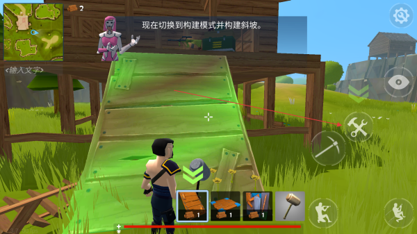 4、在構建模式中選擇材料搭建斜坡幫助角色到達更高處或躲避敵人。