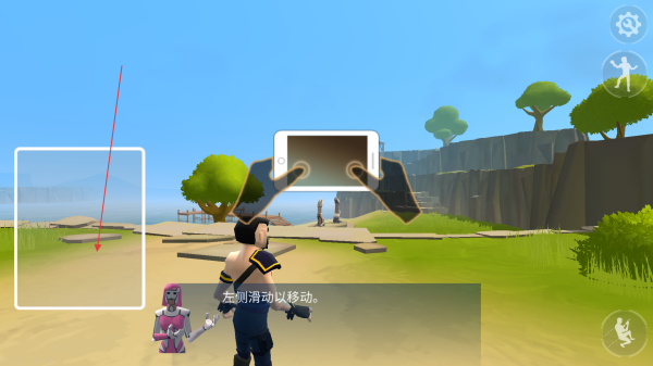 1、進入游戲根據(jù)提示在屏幕左側滑動來控制角色移動探索場景。