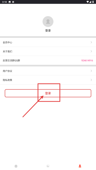 3、點擊底部我的選項,進入個人頁面,點擊登錄按鈕,進入登錄選擇頁面。