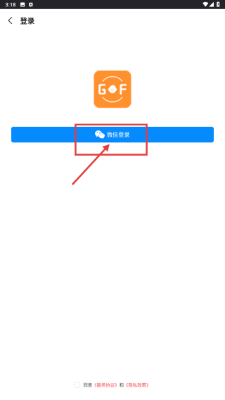 4、在登錄選擇頁面,點擊微信登錄按鈕,使用微信進行賬號登錄操作。
