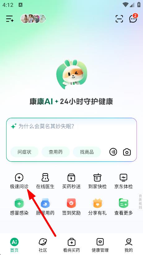 1、在首頁,點擊極速問診,進入醫(yī)生助手頁面。