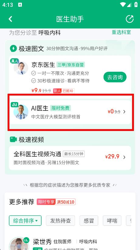 4、在分診頁面,可選擇醫(yī)生等問診方式進行咨詢。