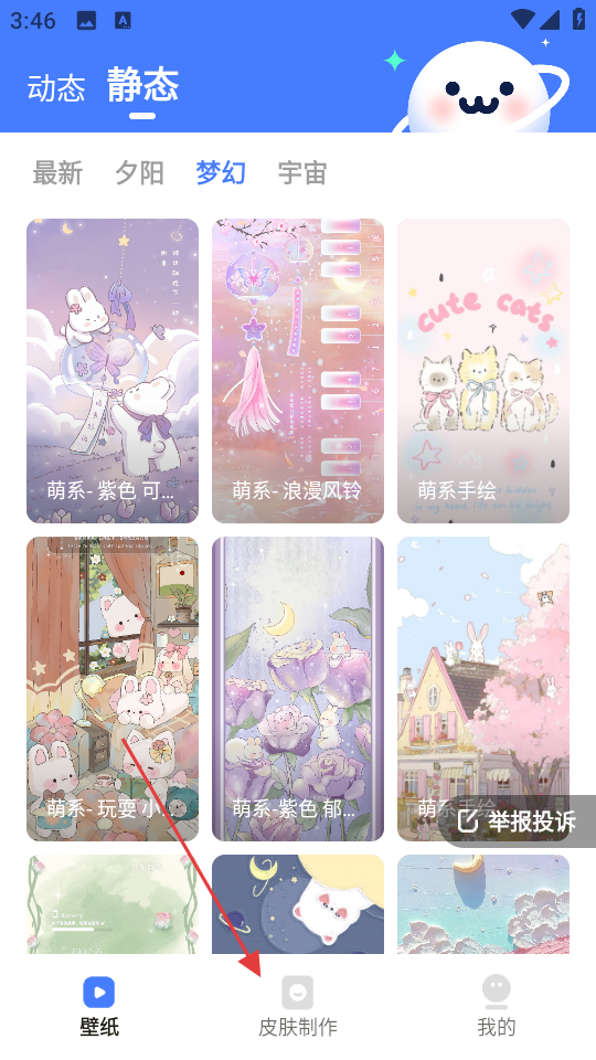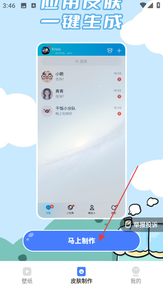 1、在壁紙頁面,點擊皮膚制作,進入皮膚制作頁面。