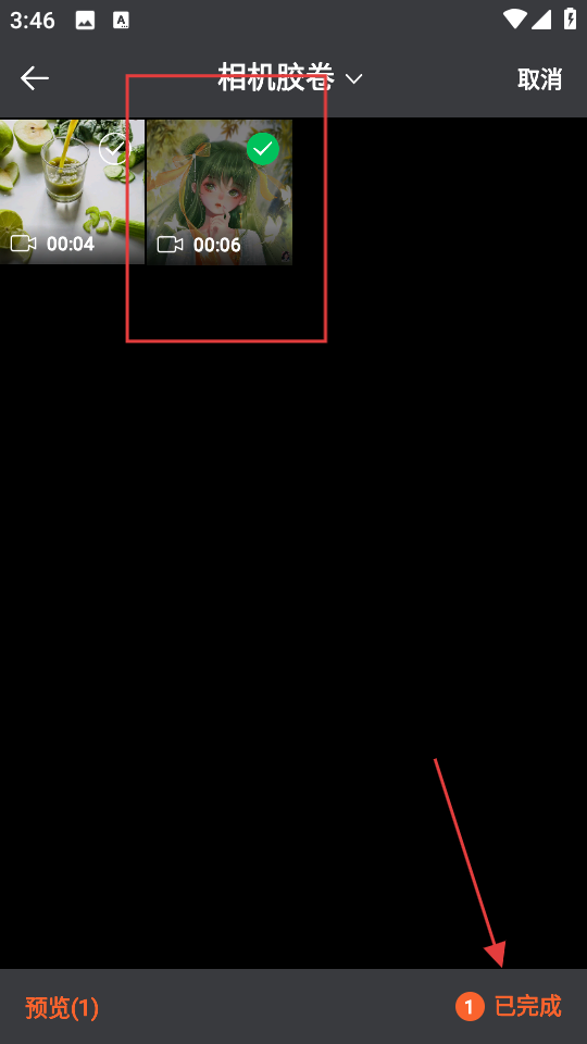 3、在選擇素材頁面,選好素材后點擊已完成,進入皮膚預(yù)覽頁面。