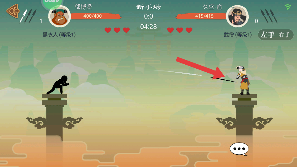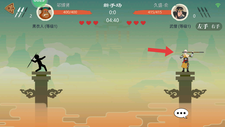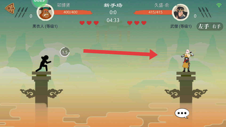 1進入古風對戰(zhàn)場景后,先通過方向鍵練習角色在石柱上的移動與跳躍,石柱面積有限,避免快速連續(xù)的跳躍以防掉落。