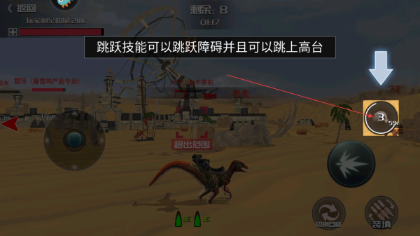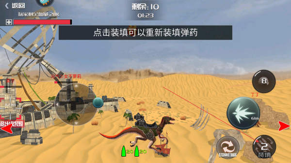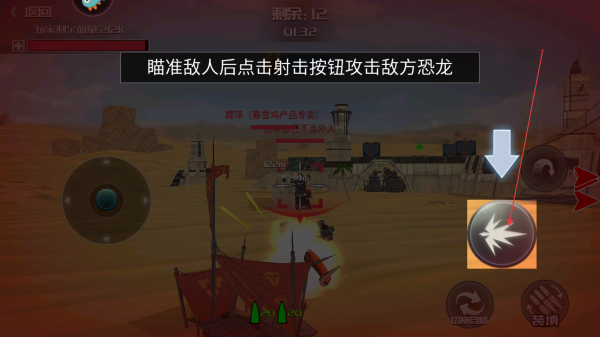 2、發(fā)現(xiàn)敵方恐龍后,瞄準(zhǔn)目標(biāo),點擊射擊按鈕對敵方恐龍發(fā)動攻擊。