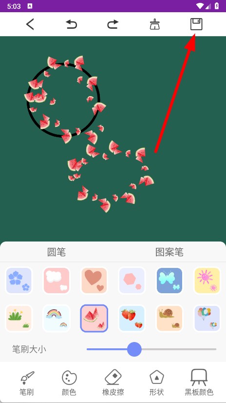 4、繪制完成,點擊界面右上角的保存圖標(biāo),將繪制內(nèi)容保存到設(shè)備中。