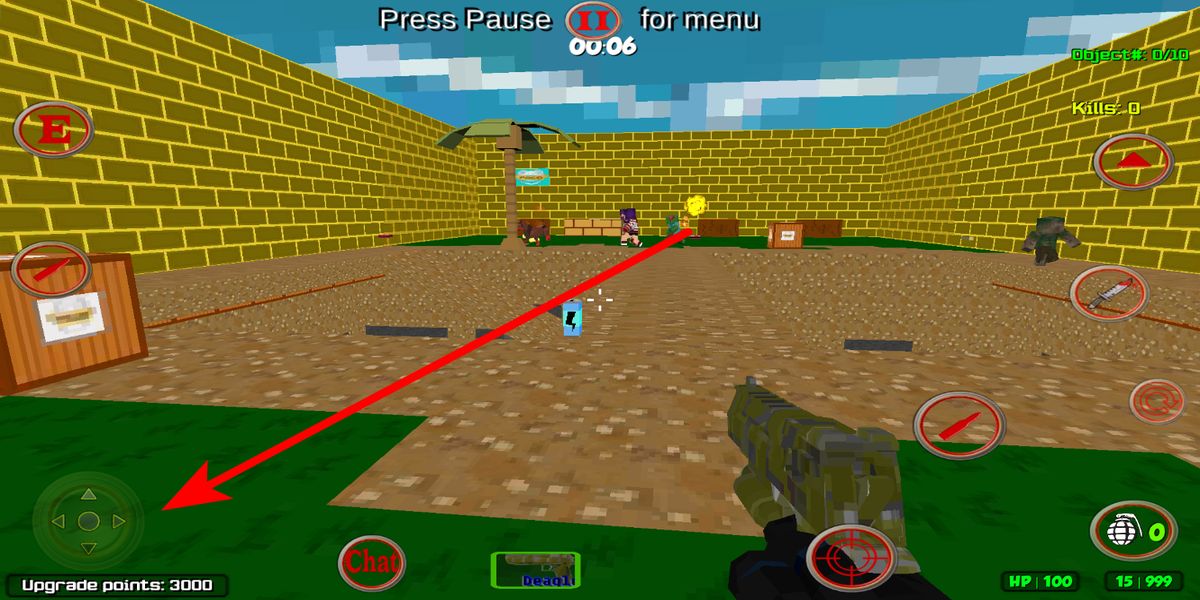 3、接著進行移動操作,在場景內,通過界面上的移動控制區(qū)域,操控角色在場地中移動,尋找目標或躲避危險,為射擊做好準備。