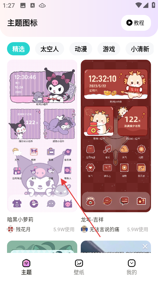 1、在主題圖標(biāo)頁(yè)面,選擇心儀的主題,進(jìn)入主題詳情頁(yè)。