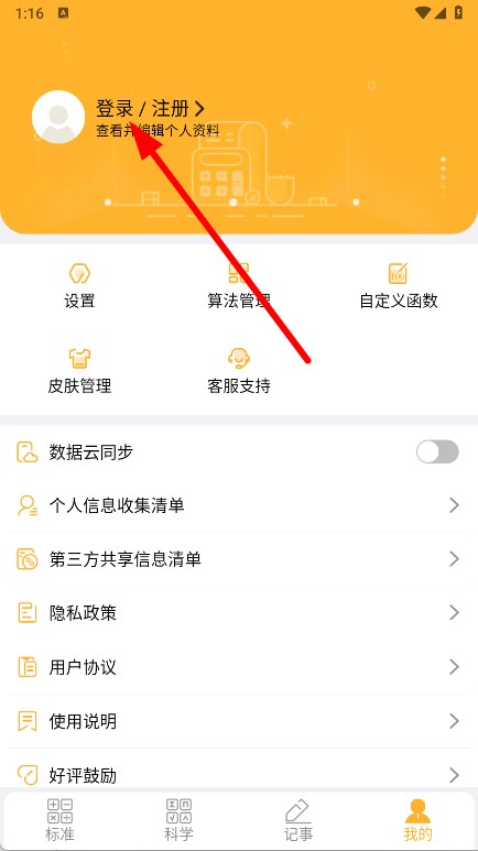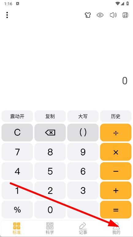 1、打開手機(jī)計(jì)算器,點(diǎn)擊底部我的選項(xiàng)。