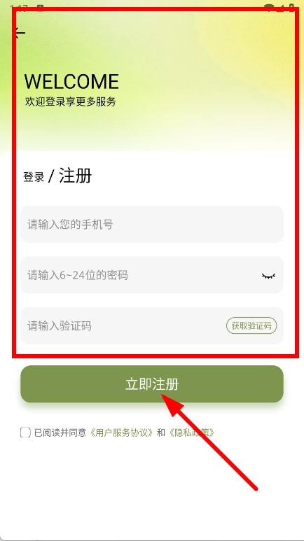 4、依次輸入手機(jī)號等,點(diǎn)擊獲取驗(yàn)證碼并輸入,點(diǎn)擊立即注冊完成賬號注冊。