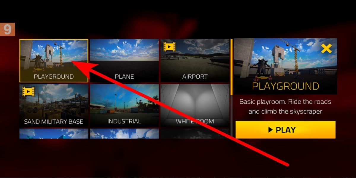 2、進(jìn)入場(chǎng)景選擇界面后,能看到多種不同的場(chǎng)景,PLAYGROUND等,根據(jù)自身喜好,選擇合適的場(chǎng)景,進(jìn)入該場(chǎng)景開展后續(xù)行動(dòng)。