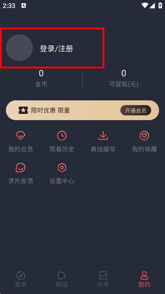 2、在個人頁面,點(diǎn)擊登錄注冊,進(jìn)入登錄注冊界面。