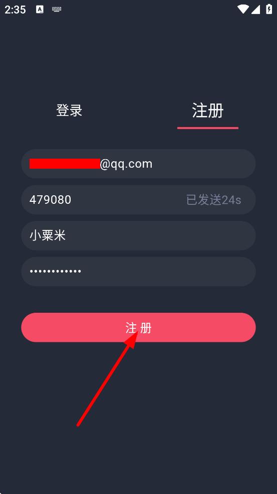 3、在注冊界面,填寫郵箱、驗(yàn)證碼、昵稱、密碼等信息,點(diǎn)擊注冊。