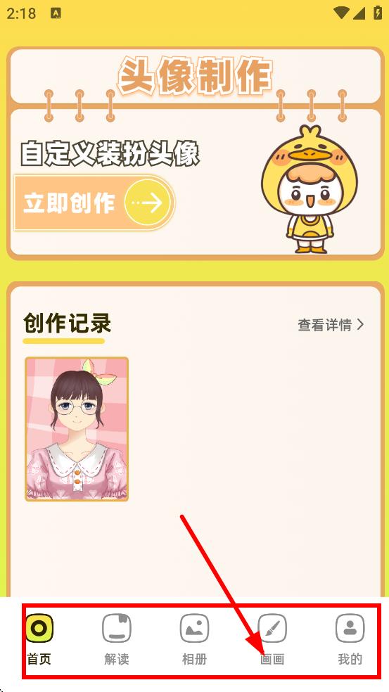 1、在首頁,點(diǎn)擊底部的畫畫,進(jìn)入趣味畫畫頁面。