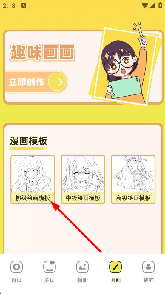 3、在初級繪畫模板中,選擇具體的模板,開始繪畫。