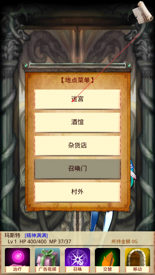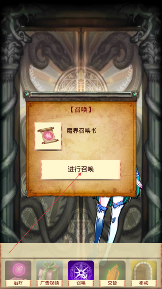 2、進(jìn)入后,點(diǎn)擊召喚按鈕,使用魔界召喚書進(jìn)行魔物娘召喚,擴(kuò)充隊(duì)伍實(shí)力。