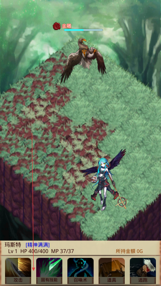 4、在戰(zhàn)斗場(chǎng)景中,根據(jù)情況選擇攻擊,固有技能,召喚術(shù),道具,逃跑等指令,與魔物戰(zhàn)斗并獲取勝利。