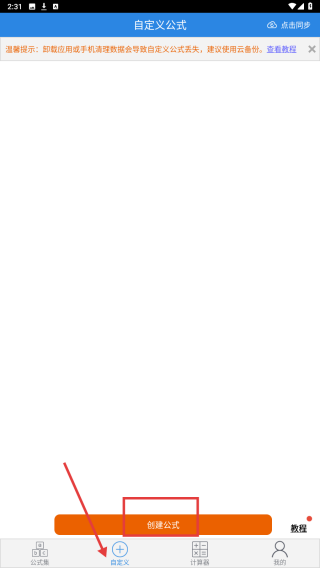2、點(diǎn)擊底部自定義選項(xiàng),進(jìn)入自定義公式頁(yè)面,點(diǎn)擊創(chuàng)建公式按鈕,編輯自定義公式。