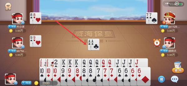 3、在選定要打出的牌型如示例中的AA后,點(diǎn)擊該牌型所在區(qū)域,即可將這手牌打出到桌面上,參與本輪牌局競(jìng)爭(zhēng),推動(dòng)游戲繼續(xù)進(jìn)行。