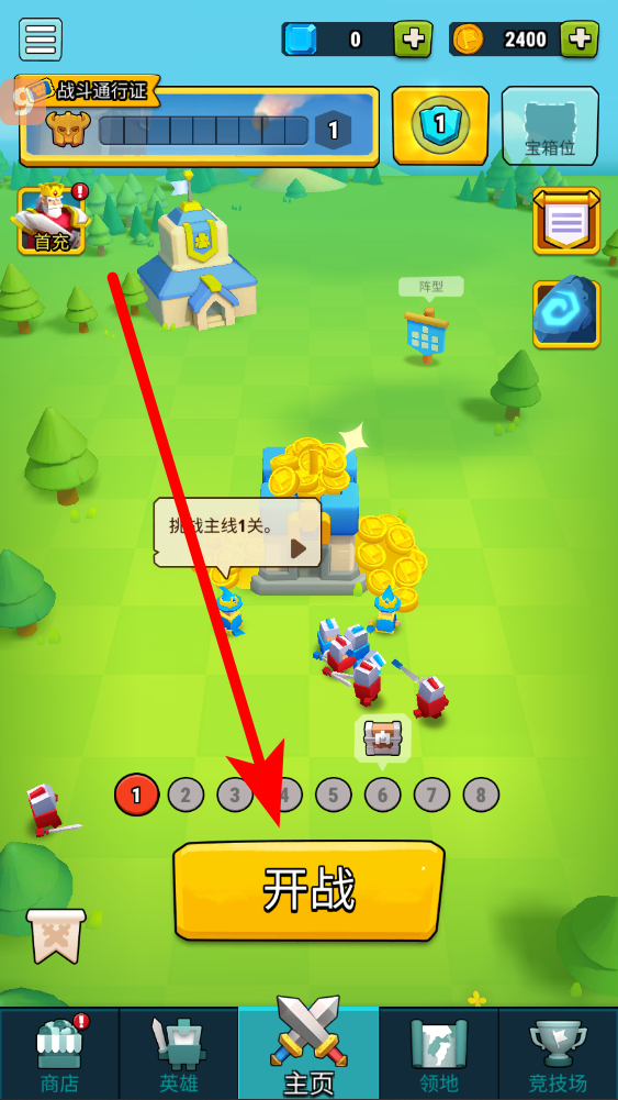 1、新手先準(zhǔn)備戰(zhàn)斗,在主界面,點擊開戰(zhàn)按鈕,進(jìn)入戰(zhàn)斗準(zhǔn)備階段,此時可查看相關(guān)戰(zhàn)斗信息,為即將到來的對戰(zhàn)做好準(zhǔn)備。