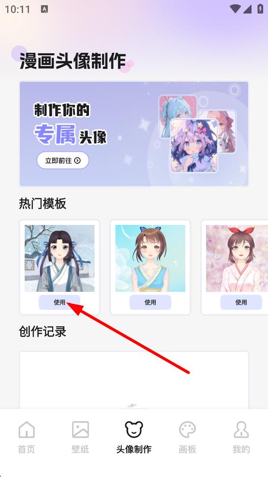 2、在漫畫(huà)頭像制作頁(yè)面,選擇熱門(mén)模板,點(diǎn)擊使用,進(jìn)入頭像制作界面。