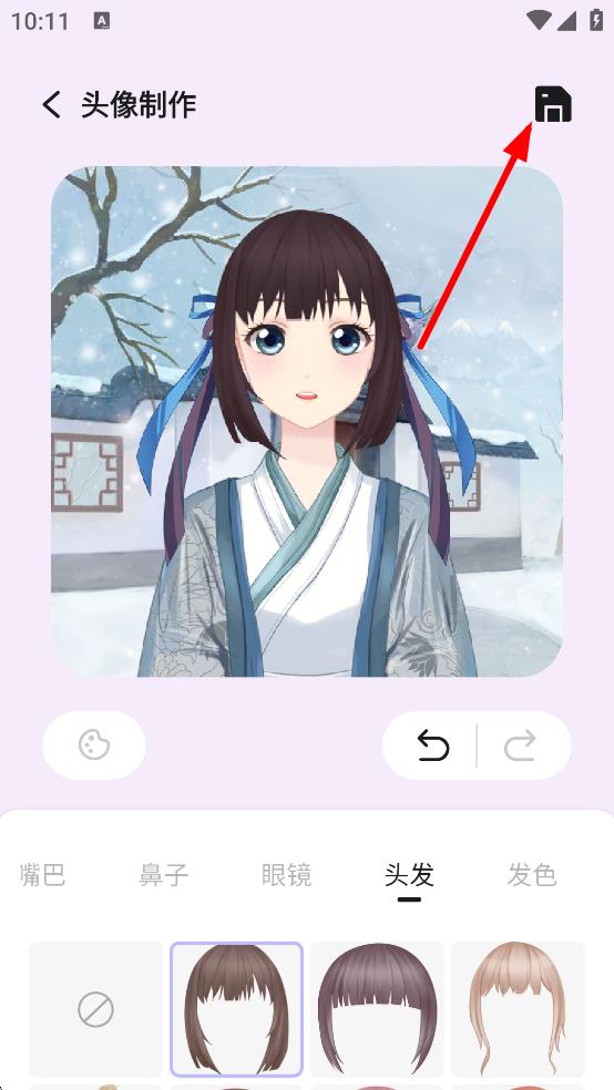 4、頭像定制完成后,點(diǎn)擊右上角保存圖標(biāo),保存制作好的頭像。