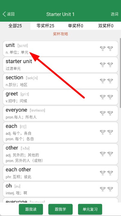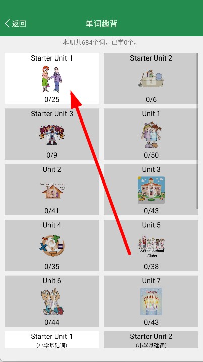 2、在單詞趣背頁面,選擇要學(xué)習(xí)的單元。