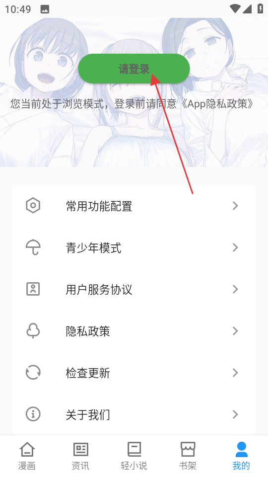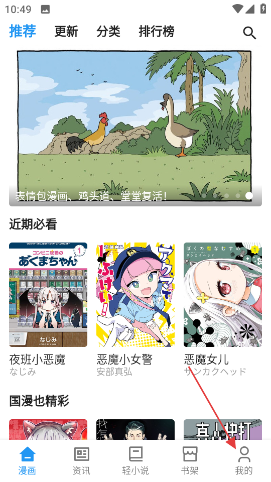 1、在漫畫應(yīng)用首頁,點(diǎn)擊底部我的,進(jìn)入個人中心頁面。