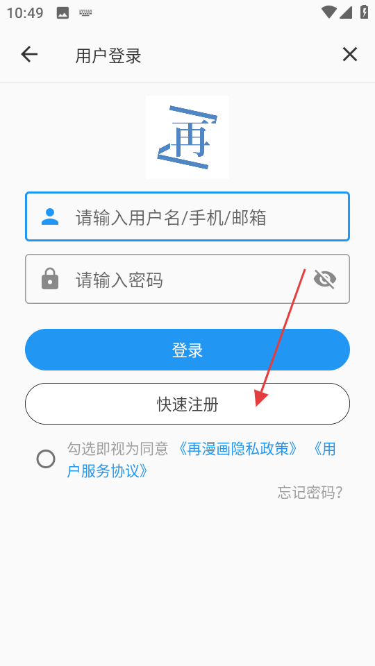 3、在用戶登錄頁面,點(diǎn)擊快速注冊,進(jìn)入用戶注冊頁面。