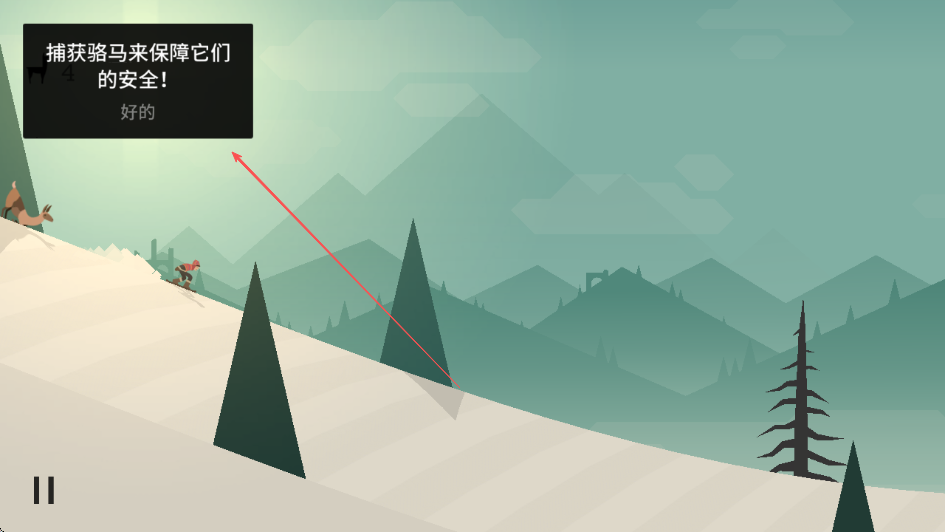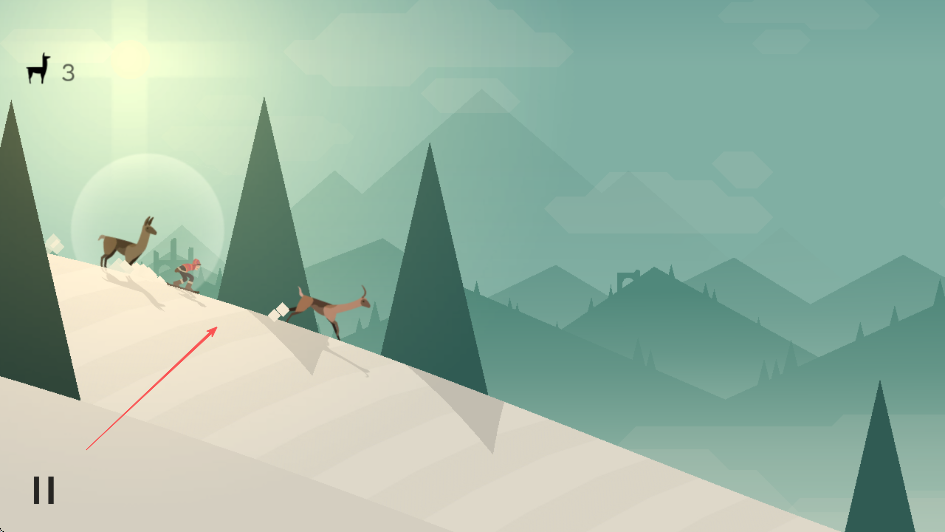 2、進入游戲操控角色在雪坡上滑行,留意左上角駱馬圖標(biāo)數(shù)量代表需捕獲駱馬數(shù)。
