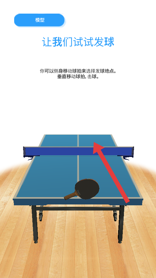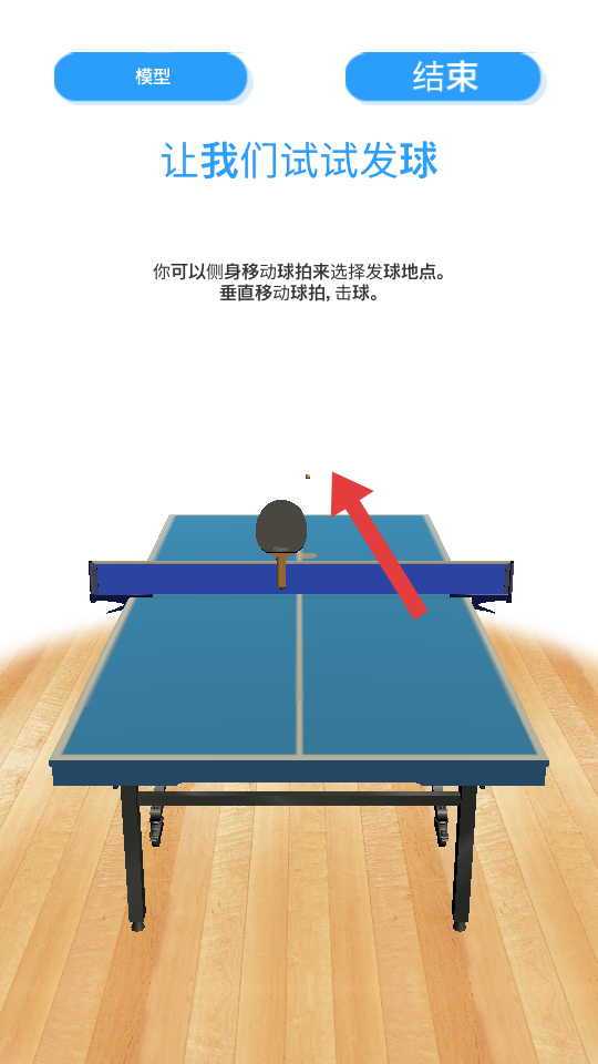 1、在乒乓球游戲發(fā)球環(huán)節(jié),按操作引導(dǎo)移動(dòng)球拍至合適位置選擇發(fā)球點(diǎn),確定后完成發(fā)球操作。