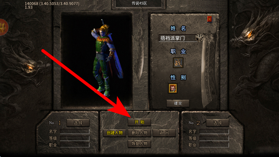 1、首先創(chuàng)建角色,在界面中找到創(chuàng)建人物選項(xiàng),為角色設(shè)定姓名、職業(yè)、性別等信息,完成設(shè)置后點(diǎn)擊開始,正式開啟在傳說大陸的冒險之旅。
