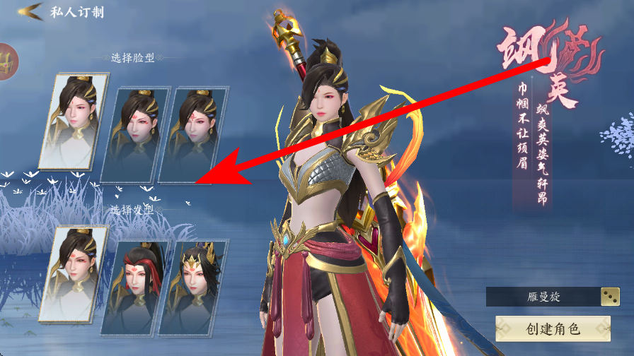 2、然后進行捏臉,進入私人訂制界面,能選擇臉型、發(fā)型等,打造出符合自己心意的武俠角色形象,讓角色更具專屬個性。