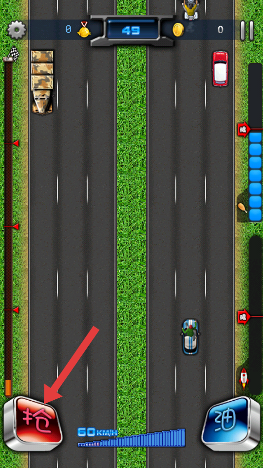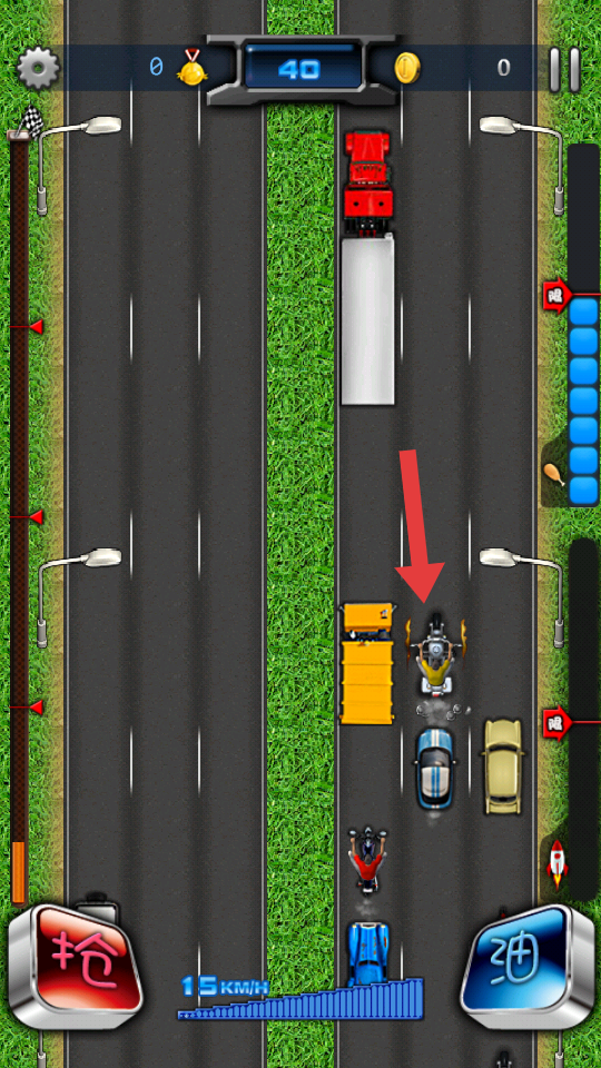 4、合理搭配武器使用時機如優(yōu)先用武器清除大型卡車障礙、保留武器應(yīng)對密集車流,同時積累撞車得分,達成關(guān)卡得分。