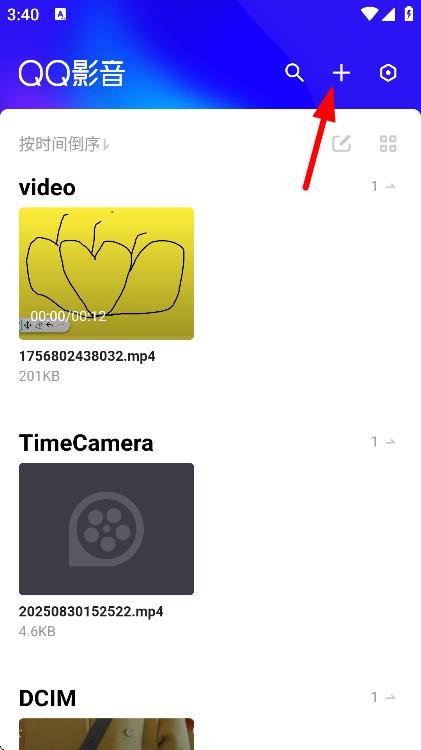 1、在QQ影音主界面,點(diǎn)擊右上角+號,彈出獲取視頻選項(xiàng)。