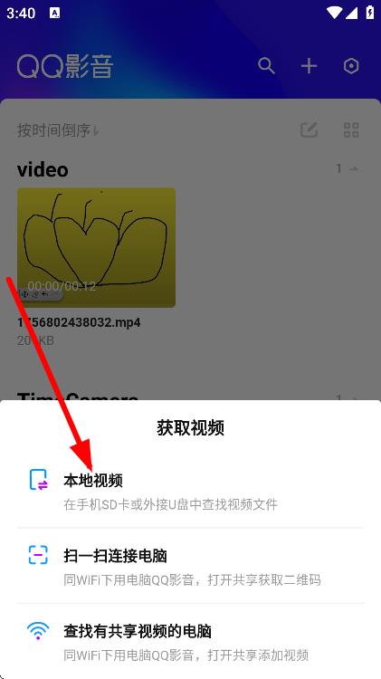 2、在獲取視頻選項(xiàng)中,點(diǎn)擊本地視頻,進(jìn)入內(nèi)部存儲(chǔ)頁面。
