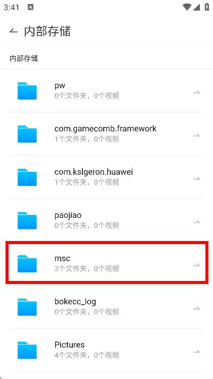 4、進(jìn)入文件夾后,可查看其中是否有視頻文件。