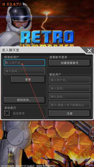 1、在登錄界面輸入用戶(hù)名,若不想注冊(cè),也可點(diǎn)擊創(chuàng)建游客賬號(hào)快速進(jìn)入游戲,若忘記密碼,點(diǎn)擊密碼找回按提示操作。