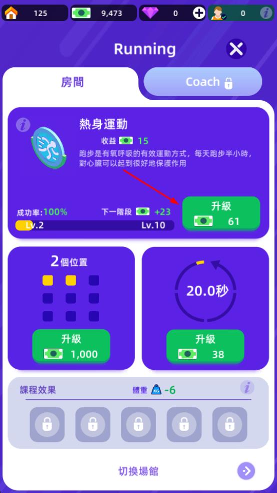 1、進(jìn)入Running模塊,可對(duì)熱身運(yùn)動(dòng)等項(xiàng)目升級(jí),跑步是有效有氧運(yùn)動(dòng),能保護(hù)心臟。