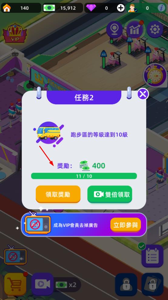 2、完成任務(wù)后,可領(lǐng)取獎(jiǎng)勵(lì),也能看視頻雙倍領(lǐng)取,助力游戲進(jìn)程。