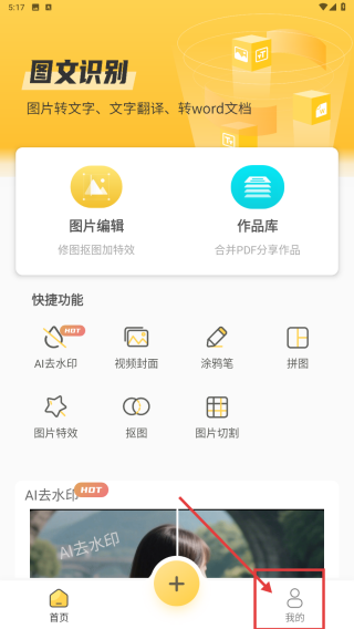 1、打開圖文識(shí)別應(yīng)用,點(diǎn)擊底部我的選項(xiàng),進(jìn)入個(gè)人中心頁(yè)面。