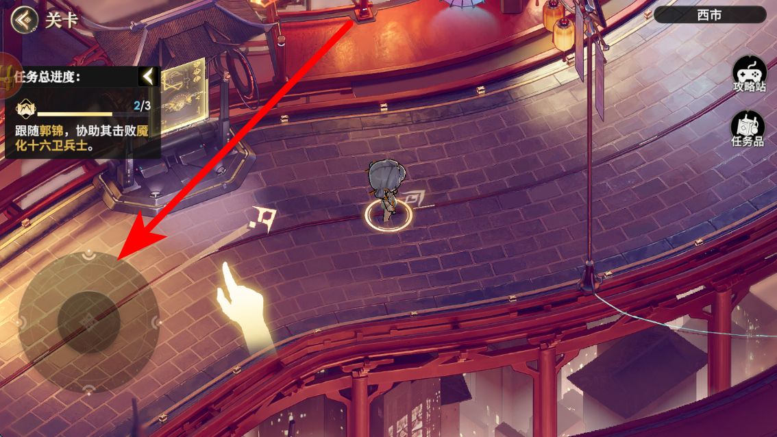 2、然后進(jìn)行移動(dòng)操作,通過操作移動(dòng)相關(guān)按鈕,控制角色在古風(fēng)場(chǎng)景中移動(dòng),前往不同位置,為與敵人的戰(zhàn)斗做好準(zhǔn)備。